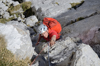 Some scrambling to the ridge and then the summit of the Fleischbank.